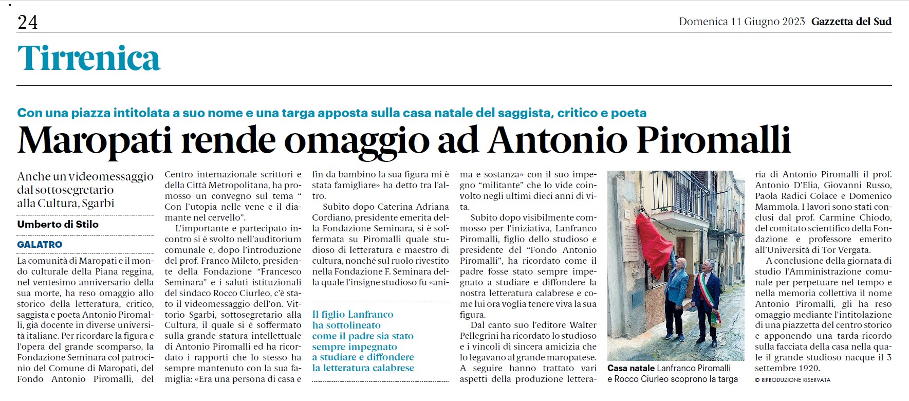 QUARANTENNALE DELLA SCOMPARSA DI FORTUNATO SEMINARA